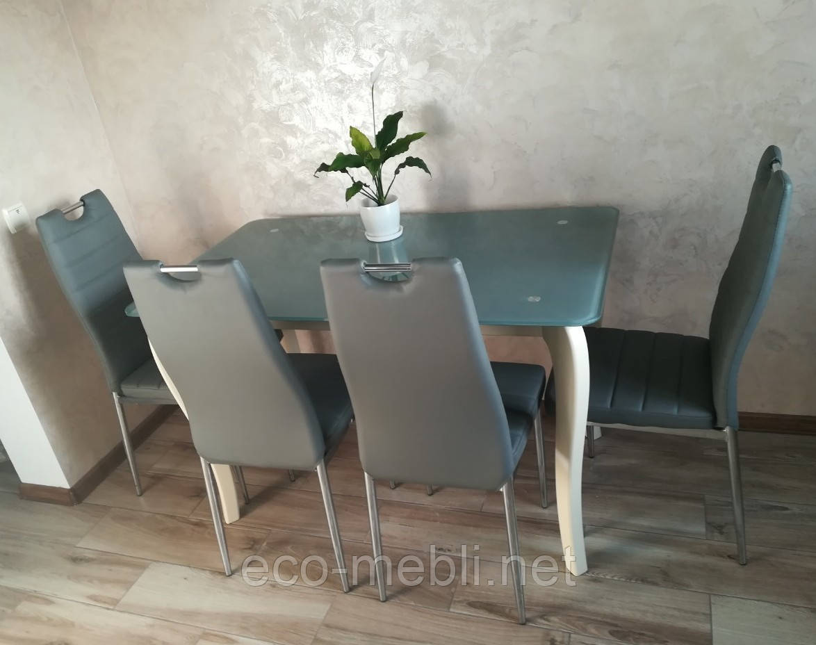 Обідній стіл Класик на дерев'яних ногах слонова кістка і фарбуванням в одтн колір на стільниці. Є можливість фарбування за кольором РАЛ дерева та скла. Приймаються індивідуальні замовлення.