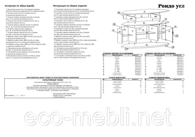| Колір (відтінок) меблів | Дуб молочний, Горіх темний, Венге, Дуб сонома |